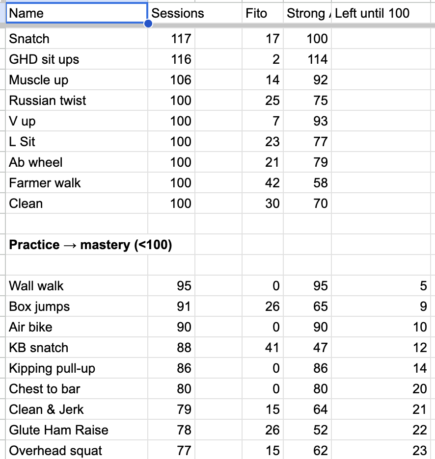 And I would still manually update a spreadsheet with the number of times I’ve performed a certain movement that I deemed as “needed practice“.