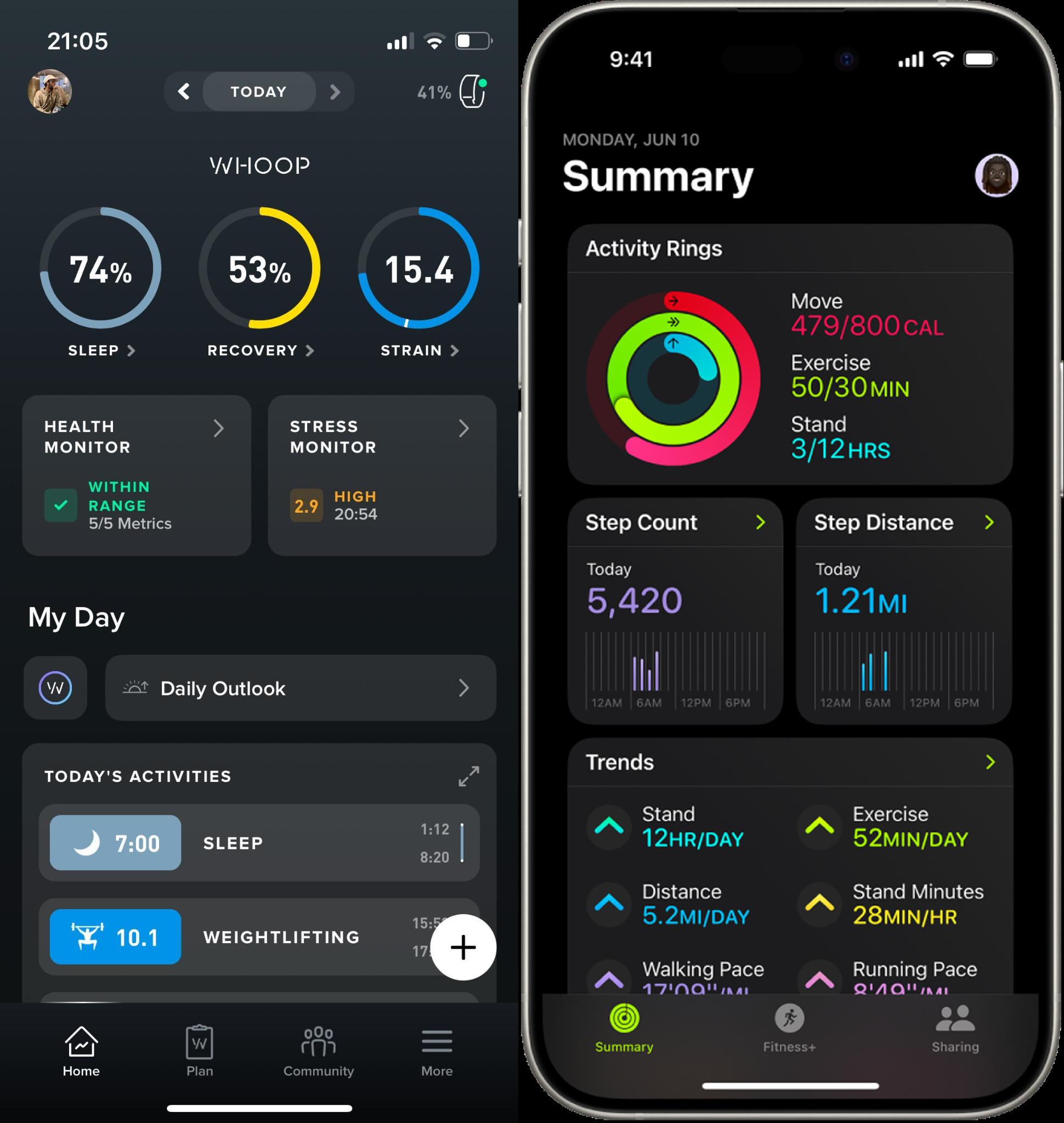 I use Whoop and I absolutely love how it’s able to distill complex/boring HRV/RHR metrics into simple, quantified scores like recovery and strain. Whoop and Apple Fitness—that’s just as big on quantifiable fitness—were a big motivation for this app.